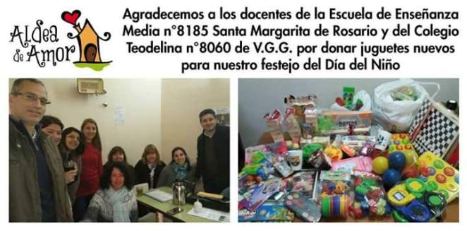 Aldea de Amor es una Asociación que ayuda al sector de oncología del Hospital de Niños Victor J. Vilela. Gracias a la iniciativa de Mariela Mogavero colaboramos con la campaña de juguetes para el Día del Niño. Un pequeño gesto que nos llena de alegría. Gracias, Aldea de Amor por hacer tanto bien a los chicos y sus familias en momentos tan difíciles.